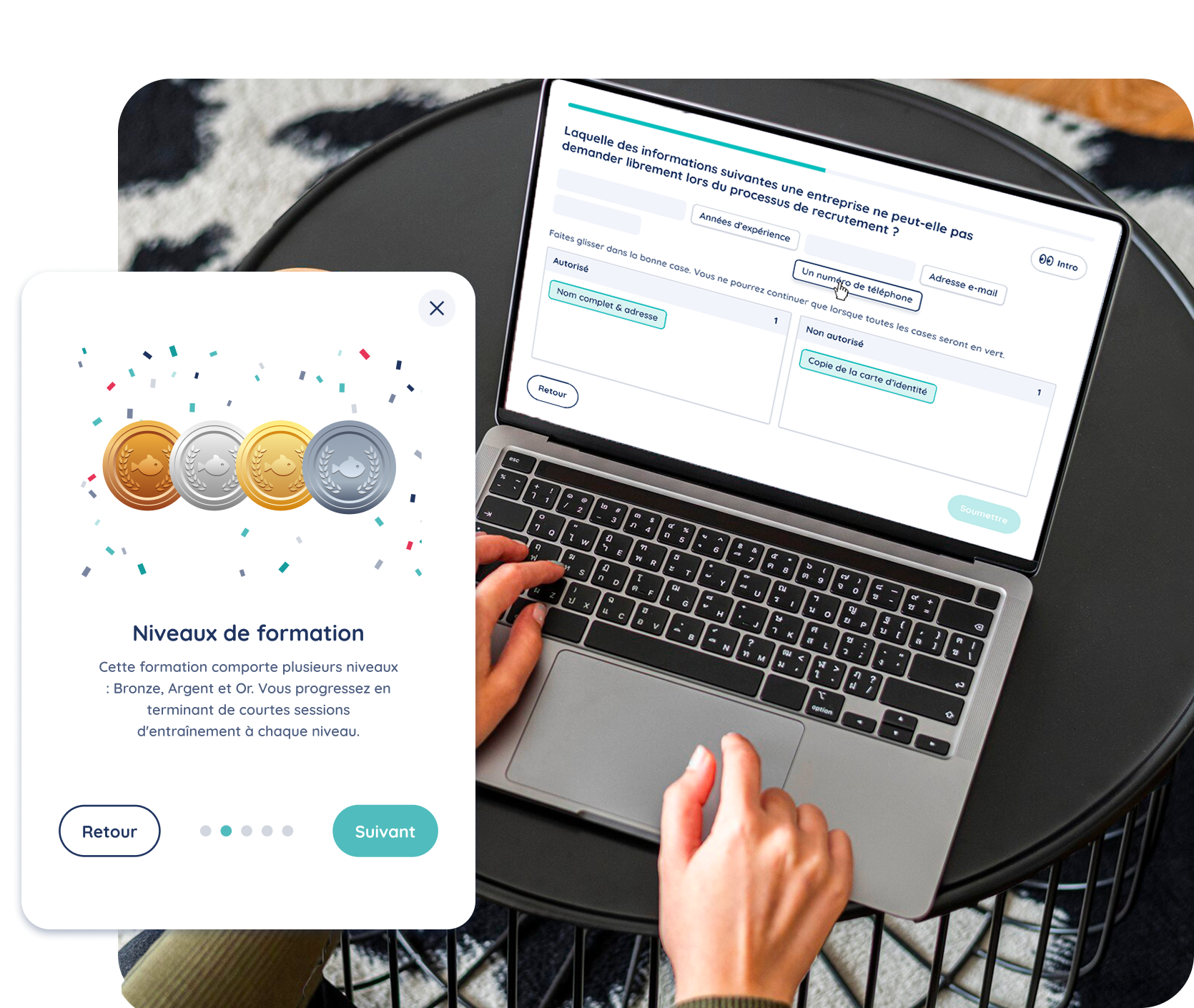 Avec notre solution, vos collaborateurs pourront se former avec différents outils et fonctionnalités :
